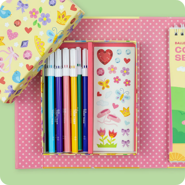 Questi set da colorare splendidamente illustrati sono ricchi di attività, pennarelli colorati e adesivi. Tutti pensati per rendere felici i tigrotti in movimento.