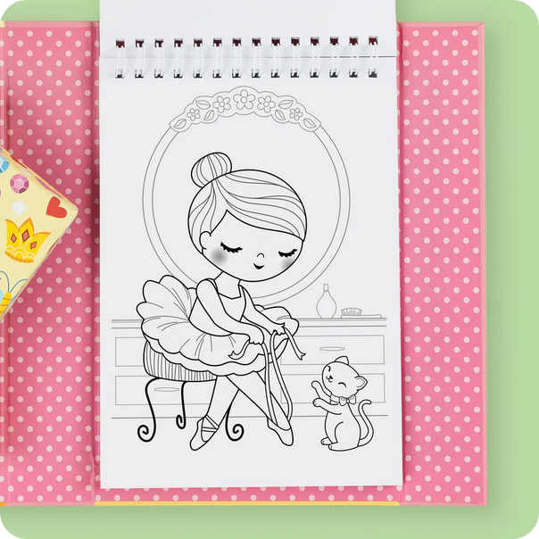 Esplora, colora e decora le pose e i passi del balletto classico con bellissime ballerine e costumi che ispireranno e incanteranno!