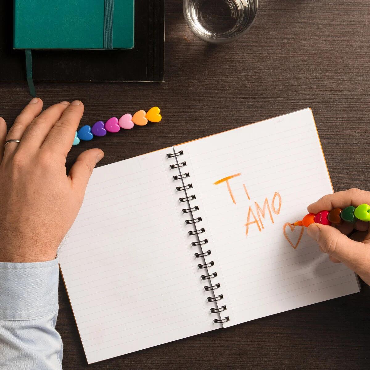 Solo così diventerà davvero speciale. Se non ci credi, prova i12 Pastelli Impilabili - Dream in Colourdi Legami: ogni disegno, lettera e biglietto di San Valentino si riempirà di emozioni grazie ai 12 colori di questi pastelli a forma di cuore.
