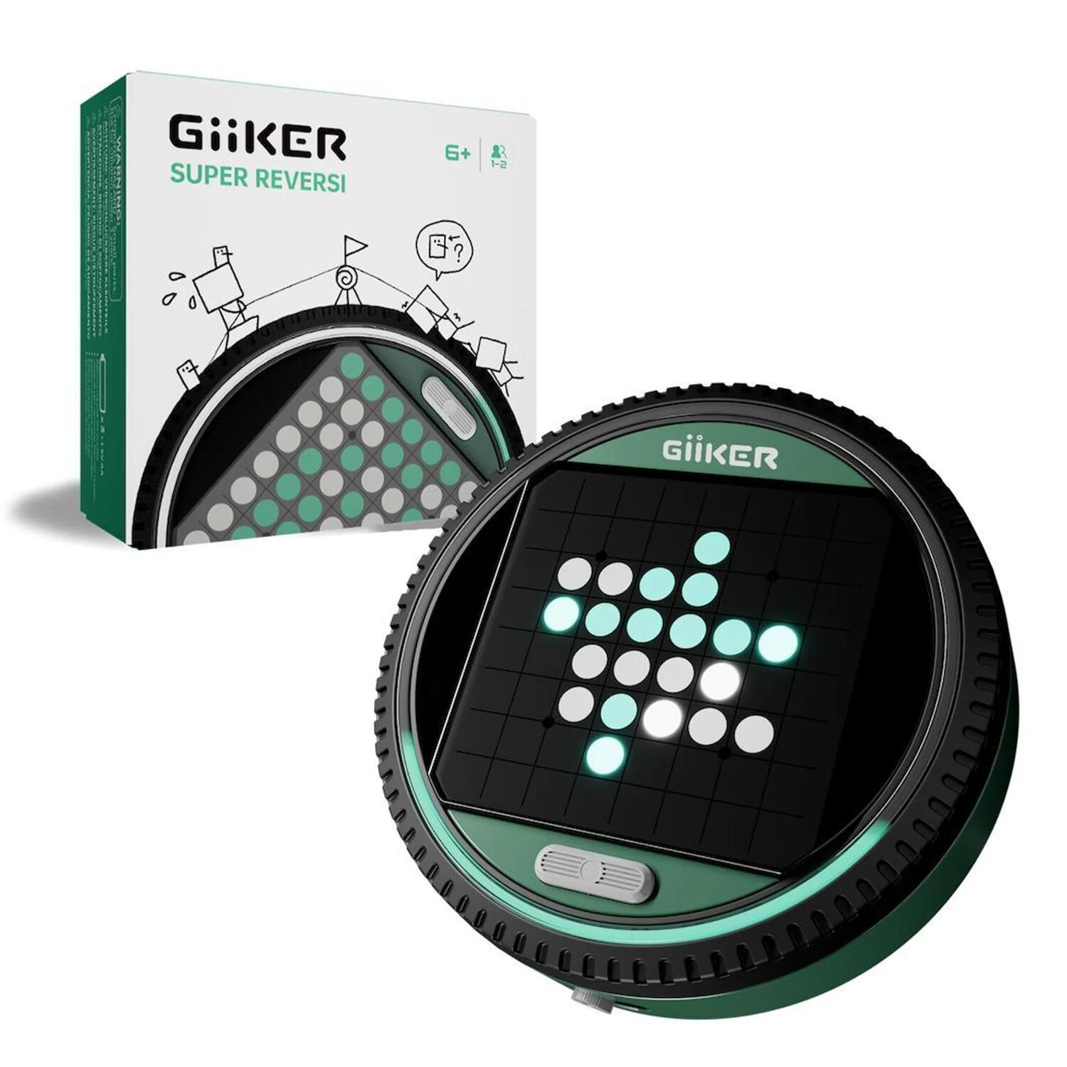 GiiKER Super Reversi è una versione moderna e tecnologicamente avanzata del classico gioco da tavolo Reversi (Othello). È dotato di un computer integrato con intelligenza artificiale (AI) che consente di giocare partite tattiche contro il sistema o contro un avversario umano.