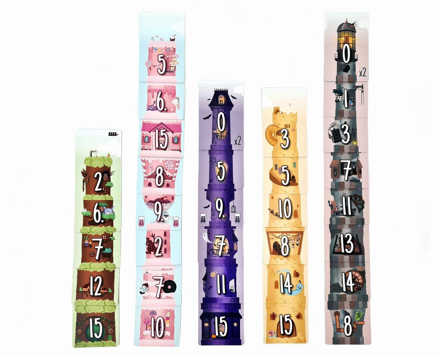 Prima di posizionare, potete anche togliere la carta più in cima per far salire la torre maggiormente, ad eccezzione dello “0”, l’ultima.